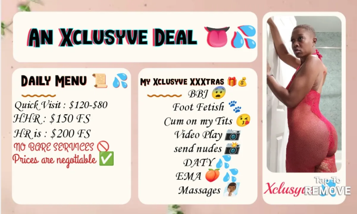 She doesnโt do boring ๐ฉ, she does nasty ๐ฆ. KarysโMa will choke you with pleasure, fuck you with passion, and leave your body shaking ๐ซ like itโs been possessed ๐น. Her service is Severely DANGEROUS ๐จ, unfiltered, and dirty enough to make you confess on Sunday ๐ โช!! Always Discreet! ๐ซฃAlways Clean!! ๐ซงVery Safe!!! ๐๐ฝโIf you cant see Karys'Ma in the time โ your calling her....SHE WONT SEE YOU๐